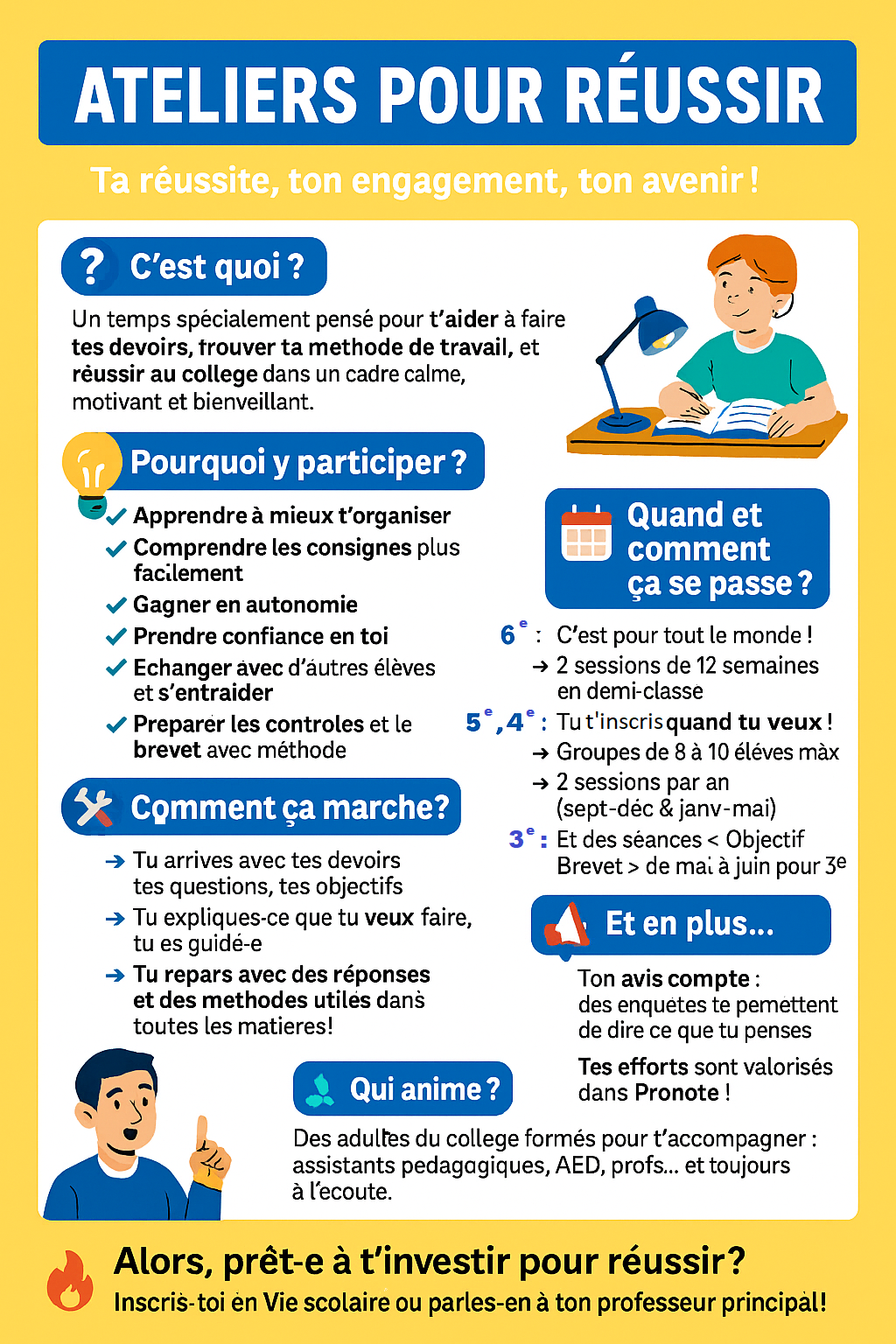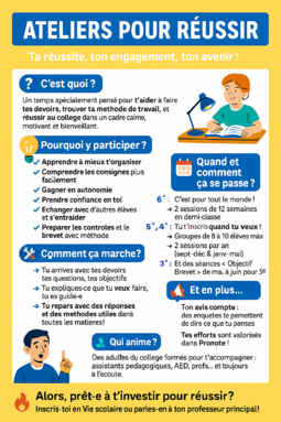 Ces ateliers visent à améliorer l'autonomie des élèves et leurs efficacité dans leur travail personnel.