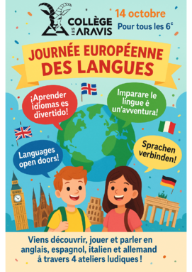 À l’occasion de la Journée des Langues, ils vont découvrir l’anglais, l’espagnol, l’allemand et l’italien à travers quatre ateliers ludiques : jeux, chansons, défis et découvertes culturelles.