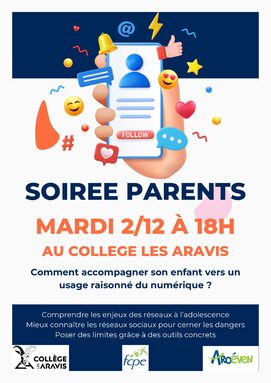 Une soirée consacrée aux réseaux sociaux sera proposée à tous les parents le mardi 2 décembre à 18h.