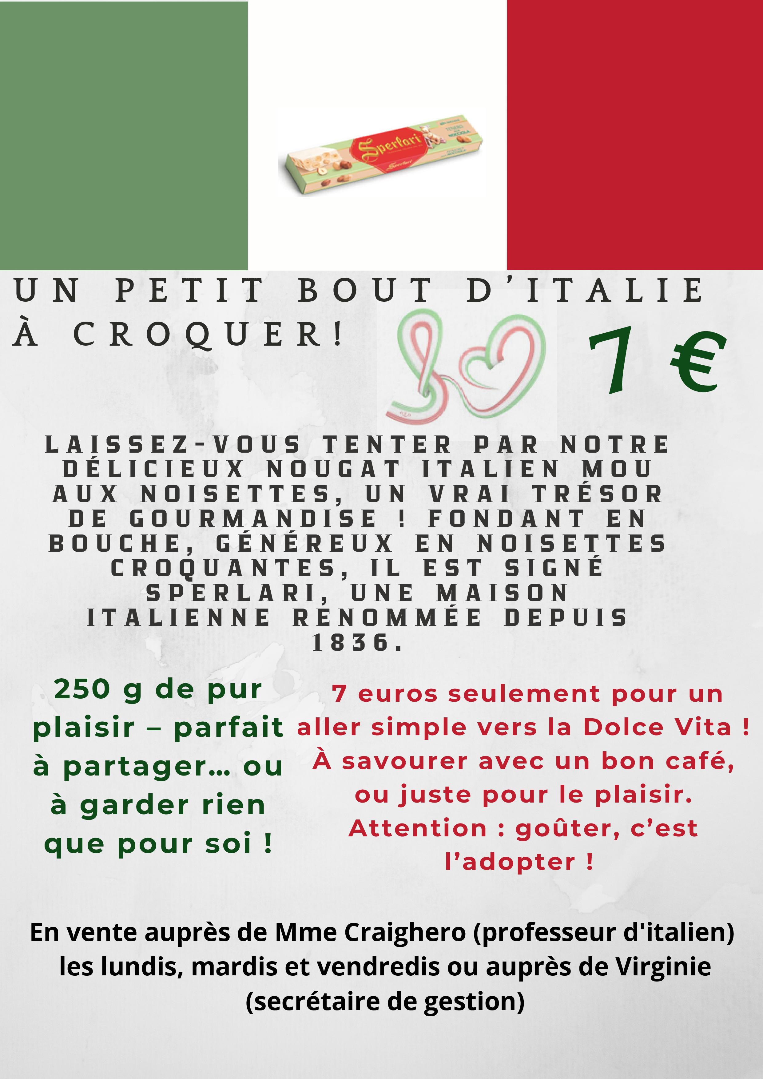 Vente auprès de Mme Craighero ou Virginie au collège,